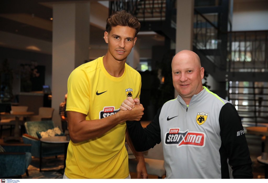 Λίγο μετά την ανακοίνωση της μεταγραφής του η ΑΕΚ έδωσε στη δημοσιότητα μια σειρά φωτογραφιών με τον Φιλίπε Ρέλβας να φορά τα κιτρινόμαυρα. Ο Πορτογάλος στόπερ πόζαρε τόσο με τον Μάρκο Νίκολιτς, όσο και με τον Χαβιέρ Ριμπάλτα και σύντομα πιάνει δουλειά.