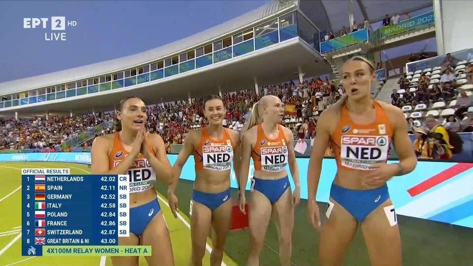 Ρεκόρ διοργάνωσης και στα 4x100 των γυναικών η Ολλανδία με χρόνο 42.02'' (VIDEO)