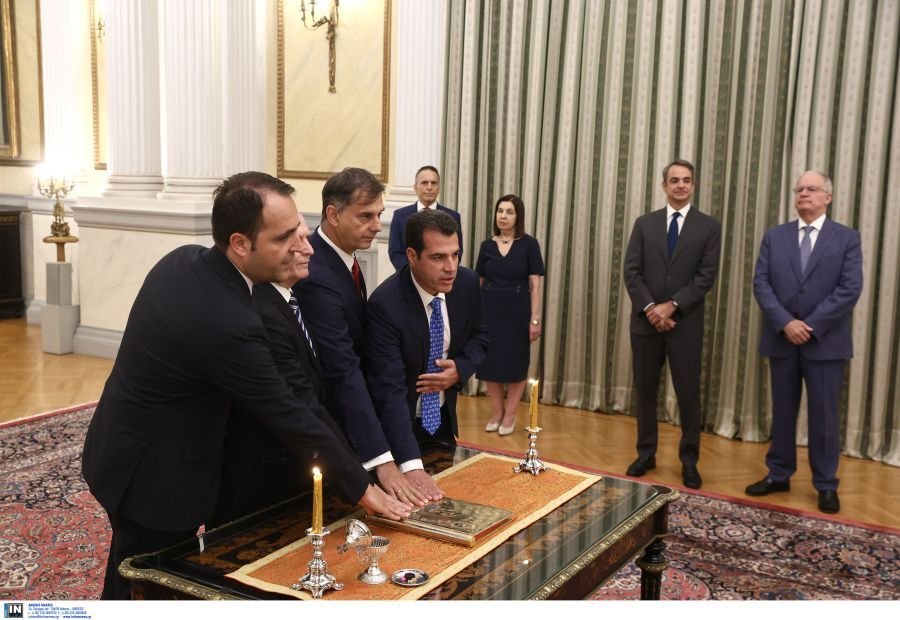 Η ορκωμοσία στο Προεδρικό Μέγαρο έγινε παρουσία του Προέδρου της Δημοκρατίας, Κωνσταντίνου Τασούλα και του πρωθυπουργού Κυριάκου Μητσοτάκη.