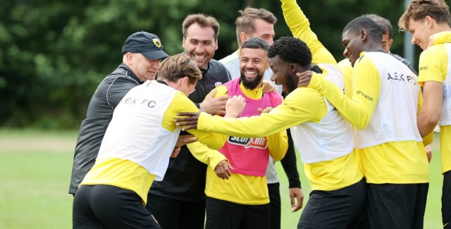 Η σημερινή προπόνηση της ΑΕΚ εδώ στο Burgh-Haamstede της Ολλανδίας, την επομένη του νικηφόρου (4-1) φιλικού με την Μπέερσχοτ, ήταν σε κλίμα… αποφόρτισης και χαλάρωσης Ήταν φανερό, πως ο Μάρκο Νίκολιτς ήθελε να αποφορτίσει ψυχολογικά τους ποδοσφαιριστές του και το… μενού περιελάμβανε ένα αρκετά χαλαρό πρόγραμμα με δυο ασκήσεις φουλ διασκεδαστικές. Αρχικά, οι ποδοσφαιριστές χωρίστηκαν σε γκρουπ και έπρεπε να μεταφέρουν την μπάλα κάνοντας έναν κύκλο χωρίς να πέσει κάτω και να την βάλουν στο αυτοσχέδιο καλάθι όσο το δυνατόν πιο γρήγορα.