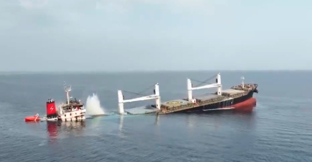 مشاهد استهداف وإغراق سفينة (ETERNITY C) بعدد من الصواريخ الباليستية والمجنحة أثناء قيامها بانتهاك قرار حظر القوات المسلحة اليمنية واتجاهها إلى ميناء أم الرشراش في فلسطين المحتلة. pic.twitter.com/dbs404YF6u