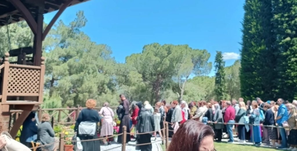 Πλήθος κόσμου συρρέει από το πρωί της Παρασκευής στην Ιερά Μονή Αγίου Ιωάννου Θεολόγου Σουρωτής για τη γιορτή του Αγίου Παϊσίου, ο τάφος του οποίου βρίσκεται στο συγκεκριμένο σημείο.