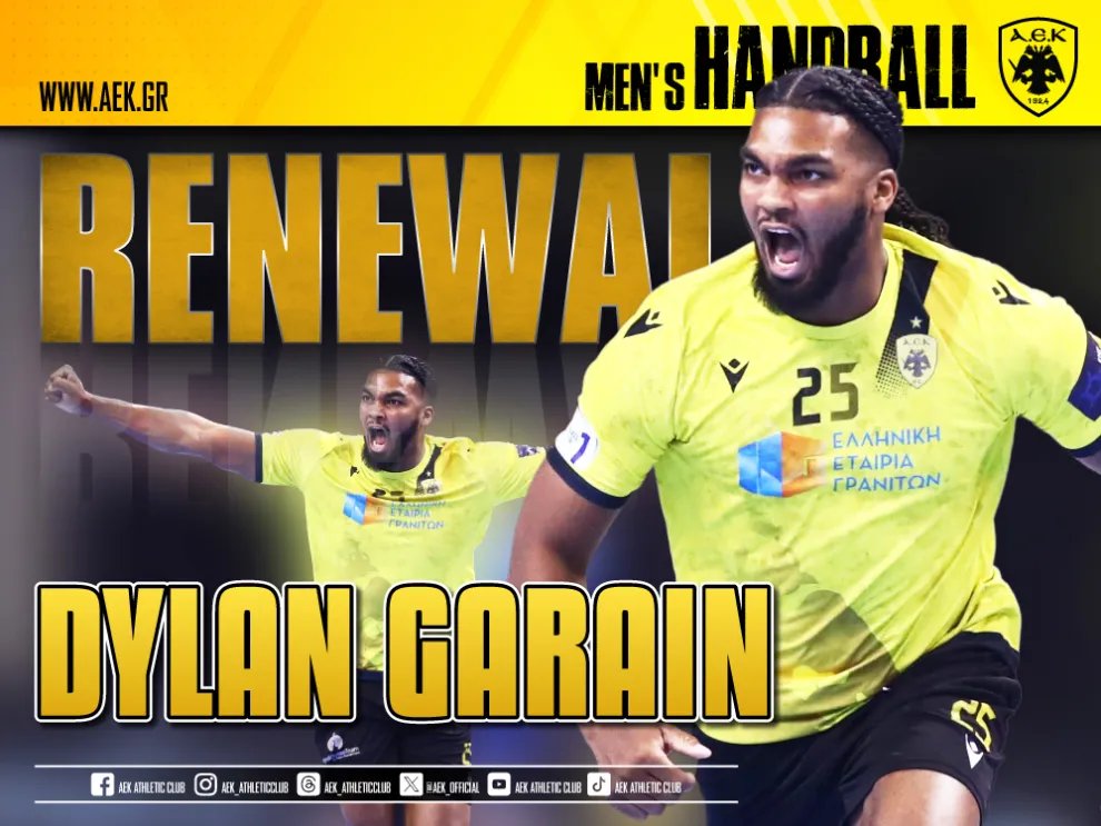 Η ΑΕΚ βρίσκεται στην ευχάριστη θέση να ανακοινώσει την ανανέωση της συνεργασίας της με τον Ντιλάν Γκαρέν. Ο 29χρονος (22/08/1996) διεθνής Γάλλος αριστερός ίντερ, υπέγραψε το νέο του συμβόλαιο και θα παραμείνει στο δυναμικό της ανδρικής ομάδας Χάντμπολ του Συλλόγου.