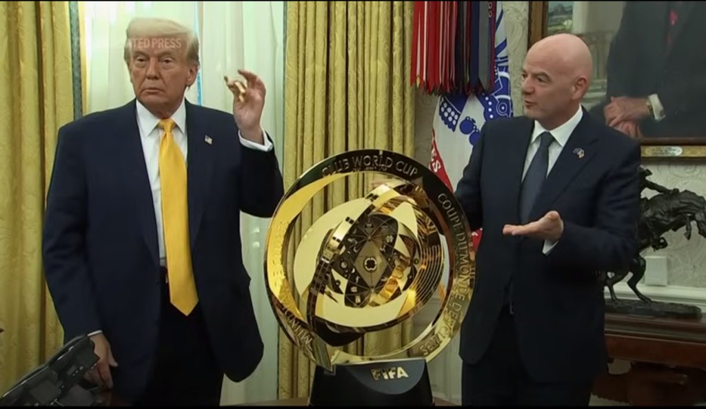 Λίγο πριν ξεκινήσει ο τελικός, μιλώντας στο DAZN, ο Τραμπ τόνισε: "Μου είπαν 'Μπορείς να το κρατήσεις για λίγο;'. Το βάλαμε στο Οβάλ Γραφείο. Μετά ρώτησα πότε θα το πάρουν πίσω και μου είπαν 'Ποτέ. Είναι δικό σου, θα φτιάξουμε νέο'”.