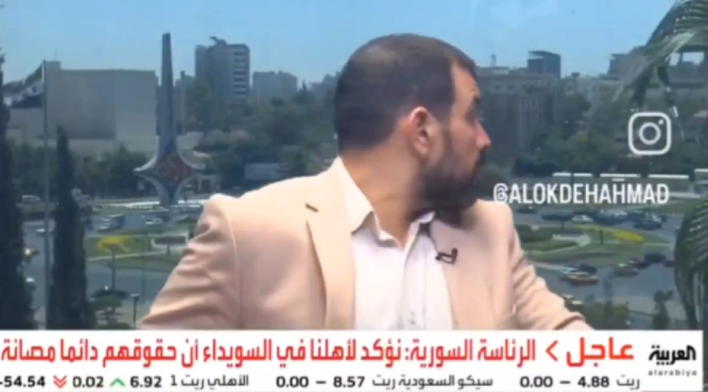 Σε αυτό, διακρίνεται παρουσιαστής του τηλεοπτικού καναλιού AlArabiya να βρίσκεται σε Live μετάδοση, να ακούει τον θόρυβο από το πλήγμα και μετά από λίγα δευτερόλεπτα να γυρίζει το κεφάλι του για να δει το έχει συμβεί.