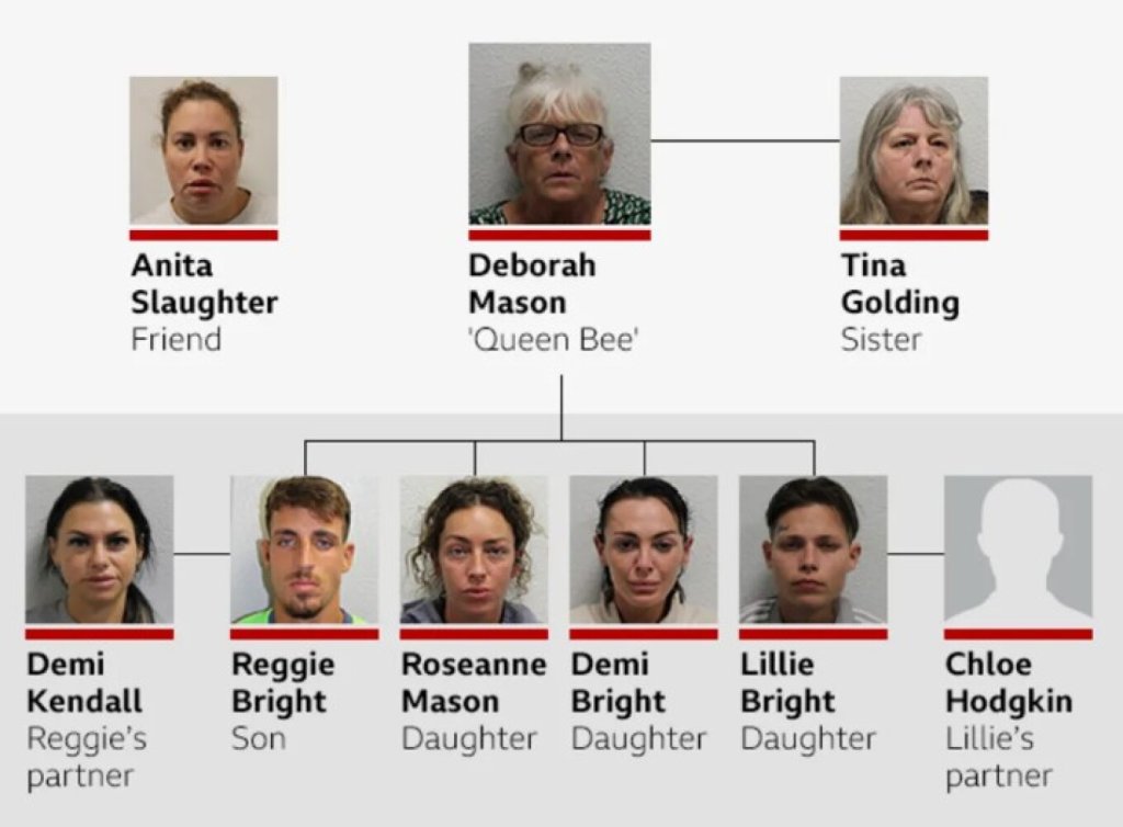 Ο εγκέφαλος μιας αδίστακτης συμμορίας ήταν η 65χρονη Ντέμπορα Μέισον, γνωστή ως «Gangsta Debbs» ή «Queen Bee». Όπως αναφέρουν οι αρχές στη Βρετανία μετέτρεψε την οικογένειά της σε εγκληματική οργάνωση που διακίνησε εκατοντάδες κιλά κοκαΐνης, με κέρδη αξίας έως και 80 εκατομμύρια λίρες.