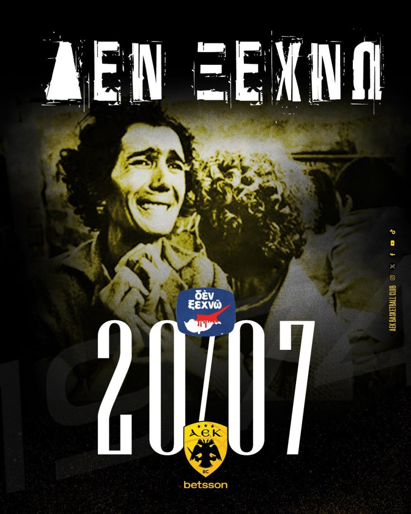 Σήμερα, 20 Ιουλίου, συμπληρώνονται 51 χρόνια από την τουρκική εισβολή στην Κύπρο και η ΚΑΕ ΑΕΚ προχώρησε στην παρακάτω ανάρτηση: