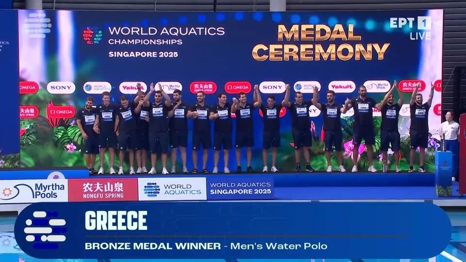 Η απονομή του χάλκινου μεταλλίου στην Εθνική ομάδα πόλο ανδρών (VIDEO)