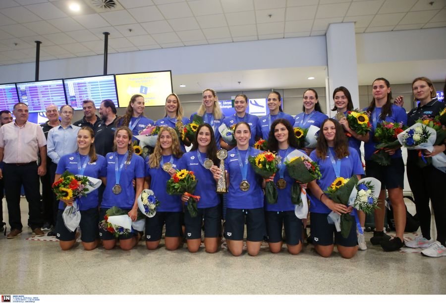 Λίγο πριν τις 8 το πρωί, έφτασε στην Αθήνα, από τη Σιγκαπούρη, η Εθνική Πόλο Γυναικών, έχοντας το χρυσό μετάλλιο στις αποσκευές της.