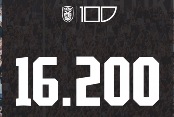 Ο ΠΑΟΚ ανακοίνωσε ότι έχουν πωληθεί 16.200 εισιτήρια διαρκείας με τη διάθεσή τους να συνεχίζεται και την επόμενη εβδομάδα.