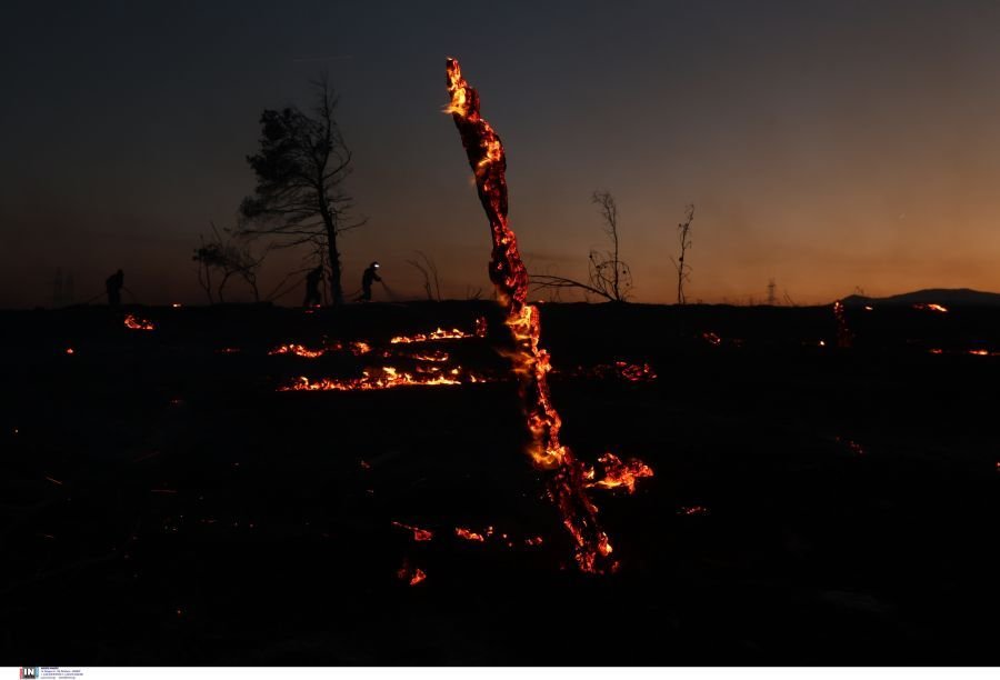Καθώς πέφτει η νύχτα η ένταση των ανέμων πέφτει, ενώ και η εικόνα της πυρκαγιάς είναι καλύτερη όπως λένε οι ρεπόρτερ του protothema.gr που βρίσκονται επί τόπου και κάτοικοι της περιοχής.