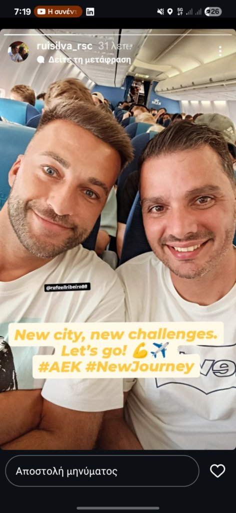 Μαζί του βρίσκεται και ο στενός συνεργάτης του Ράφα Ριμπέιρο ο οποίος θα αποτελέσει το δεξί του χέρι τη νέα αγωνιστική περίοδο. Στην ανάρτηση του ο νέος προπονητής της ΑΕΚ έγραψε: «Νέα πόλη, νέες προκλήσεις. Πάμε»