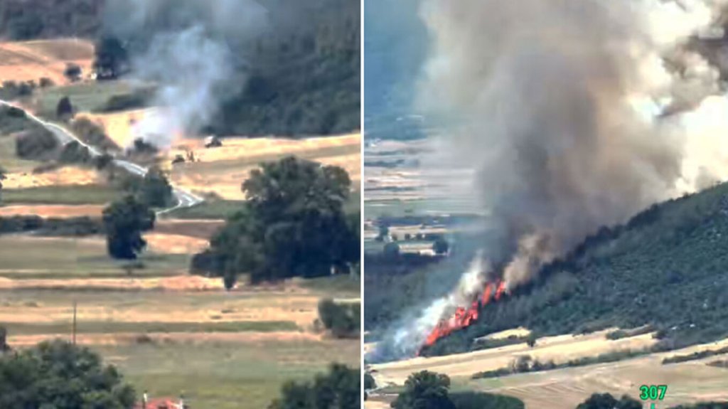 Στα πλάνα φαίνεται η στιγμή που ξεσπά η φωτιά σε ξερά χόρτα δίπλα από δρόμο. Στο σημείο διακρίνονται δύο αγροτικά μηχανήματα. Σύμφωνα με τις πληροφορίες, ένα από τα τρακτέρ είναι υπεύθυνο για την πρόκληση της φωτιάς.
