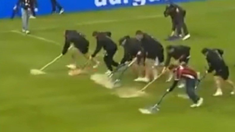 Από τη μεριά τους, οι ultras της Άαραου έκαναν ό,τι μπορούσαν, ώστε το παιχνίδι να συνεχιστεί και να ολοκληρωθεί κανονικά. Μάλιστα, ορισμένοι εξ αυτών έφυγαν από το πέταλο, κατέβηκαν στον αγωνιστικό χώρο, έπιασαν τις σφουγγαρίστρες και προσπάθησαν, συντονισμένα, να διώξουν τα νερά. Τελικά, δεν τα κατάφεραν και ο διαιτητής αποφάσισε την οριστική διακοπή του αγώνα.