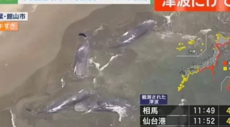 ????#BREAKING: Now, at least four whales have washed ashore along Japan’s coastline, just hours after a massive 8.8-magnitude earthquake rocked the region triggering tsunami Warnings watches and advisories pic.twitter.com/Res680IpSn