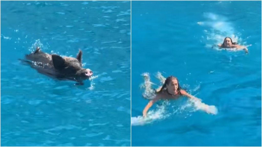 Την ώρα που κολυμπούσαν, δέχτηκαν «επίθεση» από ένα αγριογούρουνο που ήταν μέσα στη θάλασσα και πήγαινε γοργά προς το μέρος τους.