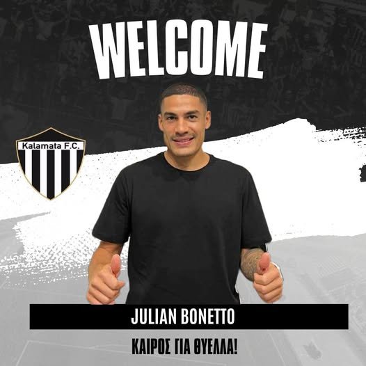 Η ΠΑΕ Καλαμάτα είναι στην ευχάριστη θέση να ανακοινώσει την απόκτηση του ποδοσφαιριστή Χουλιάν Μπονέτο, ο οποίος υπέγραψε συμβόλαιο διάρκειας ενός έτους με δυνατότητα ανανέωσης για ένα ακόμα.