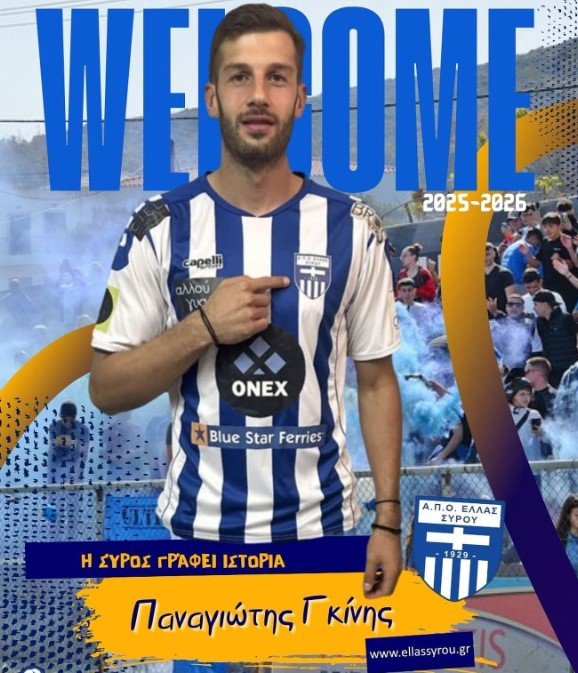 «Η ΕΛΛΑΣ ΣΥΡΟΥ ΠΑΕ ανακοινώνει με χαρά την έναρξη της συνεργασίας της με τον Παναγιώτη Γκίνη, ο οποίος ενισχύει την ομάδα μας στη θέση του τερματοφύλακα.