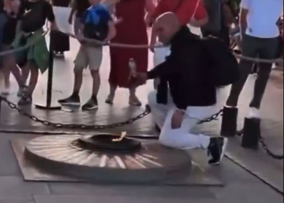 Το περιστατικό καταγράφηκε σε βίντεο που έκανε τον γύρο του διαδικτύου προκαλώντας οργισμένες αντιδράσεις σε όλη τη Γαλλία. Στις εικόνες φαίνεται ο άνδρας να παραβιάζει τον χώρο, να σκύβει, να ανάβει το τσιγάρο και να απομακρύνεται παρακολουθούμενος από εμβρόντητους τουρίστες.