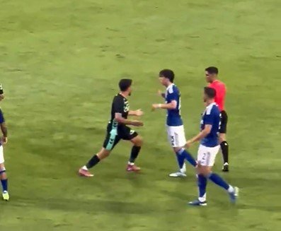 Οι πιο ψύχραιμοι μπήκαν στη μέση χωρίζοντας τους δύο παίκτες και την κατάσταση να μυρίζει... μπαρούτι, προτού οι τόνοι πέσουν και το περιστατικό λήξει με την αποβολή των δύο πρωταγωνιστών.