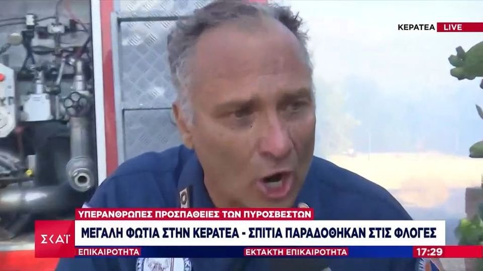 Εθελοντής πυροσβέστης από την Πολιτική Προστασία του δήμου Λαυρεωτικής που συνδράμει στην κατάσβεση μίλησε στον ΣΚΑΙ και είπε πως εγκλωβίστηκε: «Εγκλωβιστήκαμε, ευτυχώς όλα καλά. Είναι πολύ δύσκολα παιδιά».