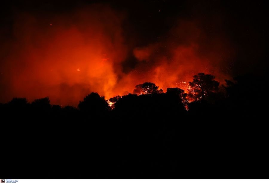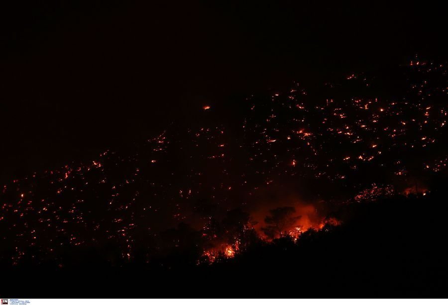 Κατά τη διάρκεια της νύχτας επιχείρησαν 264 πυροσβέστες με 10 ομάδες πεζοπόρων τμημάτων και 79 οχήματα, καθώς και μεγάλος αριθμός εθελοντών και πολλά εθελοντικά υδροφόρα οχήματα και μηχανήματα έργου, αλλά και υδροφόρες της Περιφέρειας Αττικής, τα οποία συντονίζονται επί τόπου από το κινητό επιχειρησιακό κέντρο «Όλυμπος».