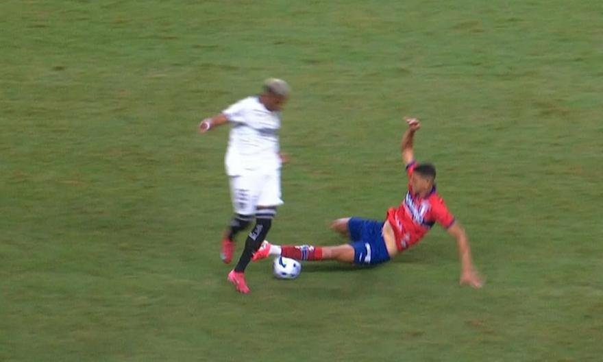 Ο λόγος είναι η, απευθείας, κόκκινη που αντίκρισε ο 21χρονος Βραζιλιάνος κεντρικός αμυντικός, επειδή πήγε σε τάκλιν με τεντωμένο πόδι στο ύψος του καλαμιού του αντιπάλου. Ο διαιτητής έβγαλε την κόκκινη κάρτα, το VAR τον επιβεβαίωσε και, από το 5ο λεπτό, η Φορταλέζα έμεινε με δέκα παίκτες.