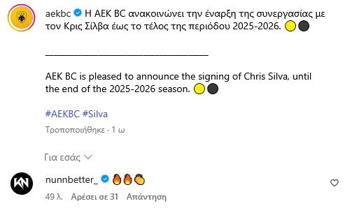 Ο Ναν ενημερώθηκε φυσικά για την άφιξη του πρώην συμπαίκτη του στην Ελλάδα και την ΑΕΚ, σχολιάζοντας κάτω από ποστάρισμα της ΚΑΕ στα social με «φωτιές» και χειροκρότημα.