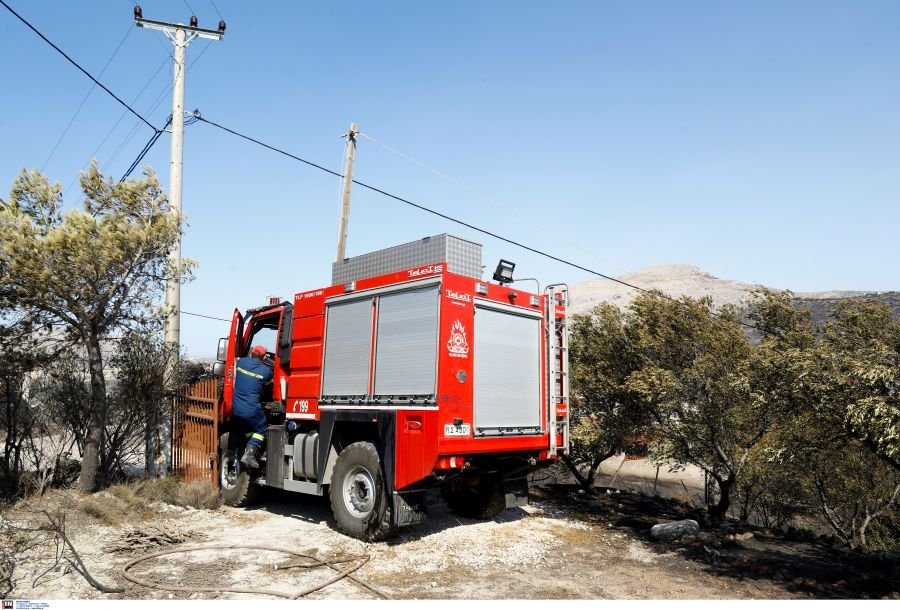 Στο σημείο της φωτιάς στην Κερατέα επιχειρούν 25 πυροσβέστες με 11 οχήματα και ένα ελικόπτερο.
