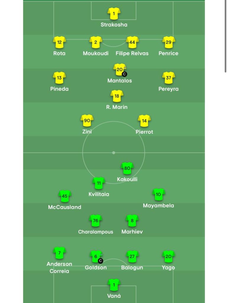 H ενδεκάδα του Άρη Λεμεσού για το ματς με την ΑΕΚ: Βάνα, Γκόλντσον, Κορέια, Μάρχιεφ, Μαγιαμπέλα, Κβιλιτάια, Γιάγκο, Μπαλογκούν, ΜακΚάσλαντ, Χαραλάμπους, Κακουλλή.