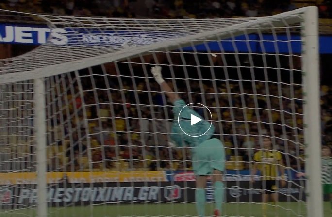 Η μπάλα πήρε περίεργη τροχιά και κατέληξε στην πάνω πλευρά του οριζόντιου δοκαριού