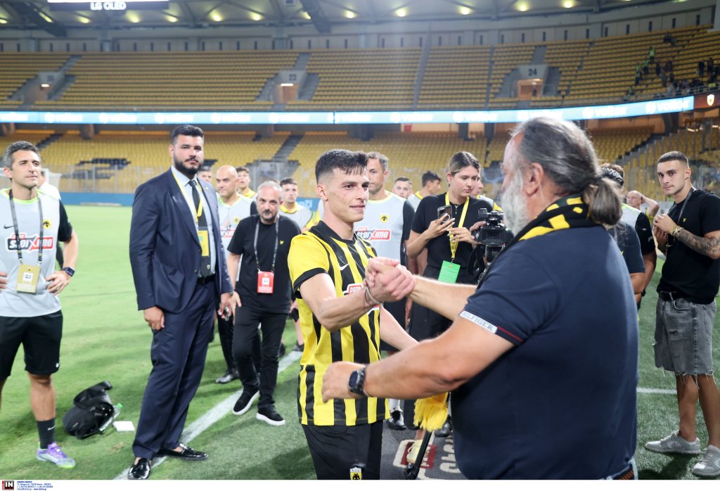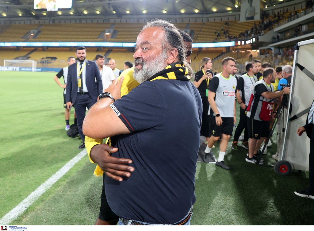 Έξω από τη φισούνα περίμενε ο Μάριος Ηλιόπουλος τους παίκτες της ΑΕΚ, μετά το τέλος του αγώνα με τον Άρη Λεμεσού. Ο ιδιοκτήτης της Ένωσης αγκάλιαζε και έδινε συγχαρητήρια σε κάθε παίκτη που πλησίαζε προς τη φισούνα. Ανακουφισμένος και ικανοποιημένος από την πρόκριση ο Ηλιόπουλος είπε στους παίκτες μπράβο για την προσπάθεια τους.