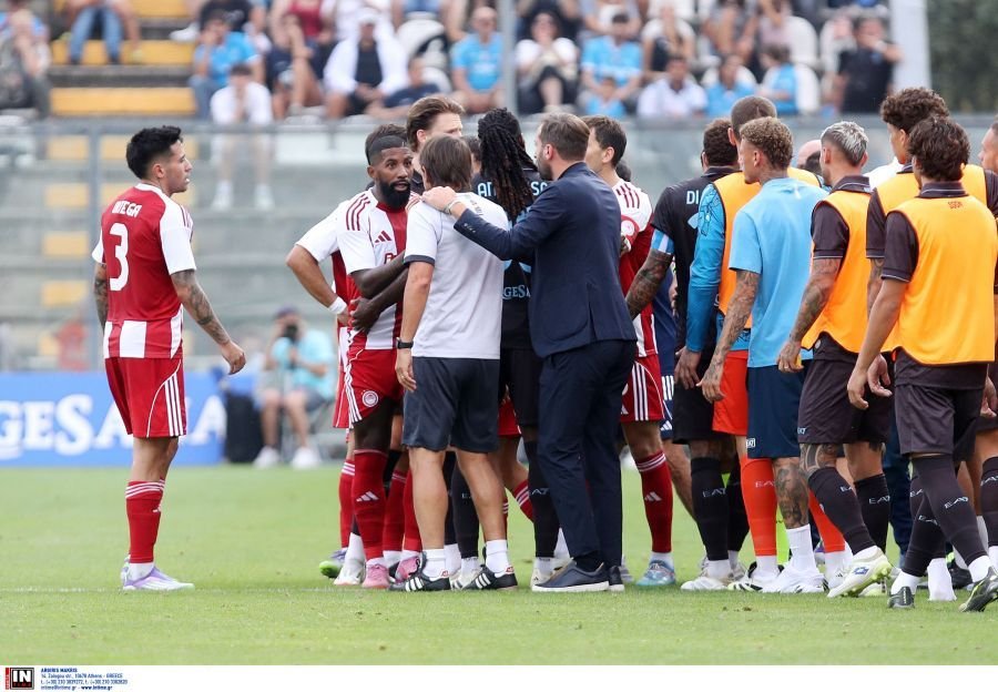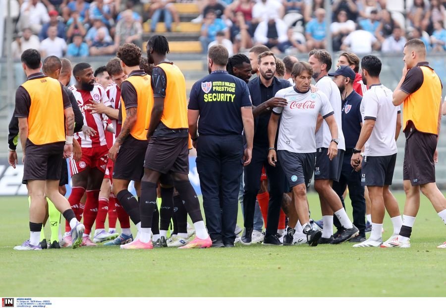 Παραλίγο γενικευμένη σύρραξη, στα τελευταία λεπτά του πρώτου ημιχρόνου, στη φιλική αναμέτρηση ανάμεσα σε Νάπολι και Ολυμπιακό.
