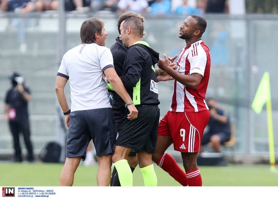 Έπειτα από προβολή του Αγιούμπ Ελ Κααμπί στον Ραχμάνι, ο Αντόνιο Κόντε, σε έξαλλη κατάσταση, εισέβαλε στον αγωνιστικό χώρο και όρμησε προς τον Μαροκινό επιθετικό του Ολυμπιακού.