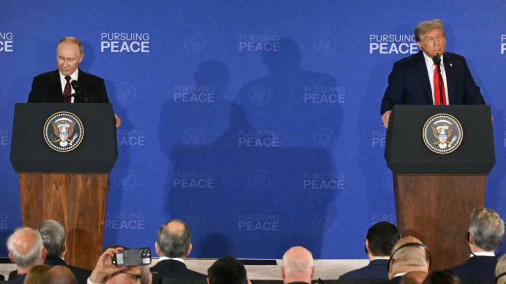 Ύστερα από σχεδόν τρεις ώρες συνομιλιών στην αεροπορική βάση Έλμεντορφ-Ρίτσαρντσον κοντά στο Άνκορατζ της Αλάσκας, οι δύο ηγέτες παραχώρησαν κοινή συνέντευξη Τύπου.