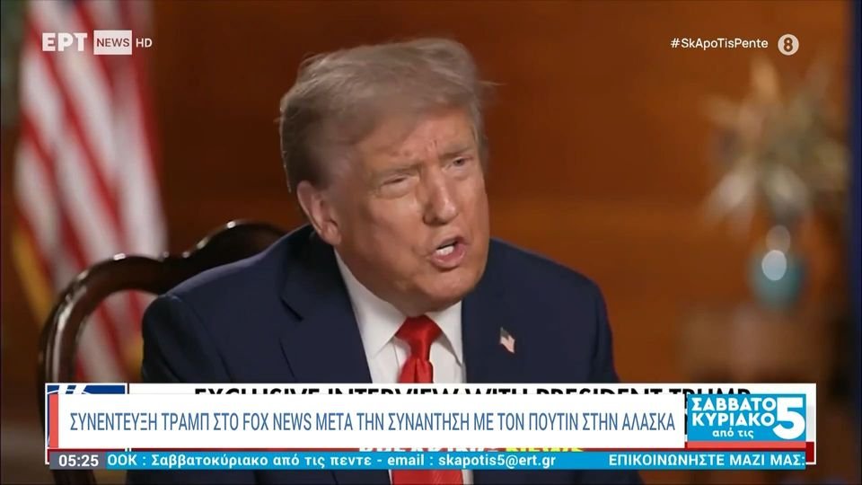 Συνέντευξη στον Σον Χάνιτι και στο Fox News έδωσε μετά το τέλος της συνάντησης με τον Βλαντίμιρ Πούτιν, ο Αμερικανός πρόεδρος, Ντόναλντ Τραμπ. Ο πρόεδρος των ΗΠΑ αναφέρθηκε σε όσα συνέβησαν κατά τη διάρκεια της παρουσίας των δύο ηγετών στην Αλάσκα και όπως είπε υπήρχαν «ένα ή δύο αρκετά σημαντικά θέματα» για τα οποία δεν μπόρεσε να καταλήξει σε συμφωνία με τον Βλαντιμίρ Πούτιν.