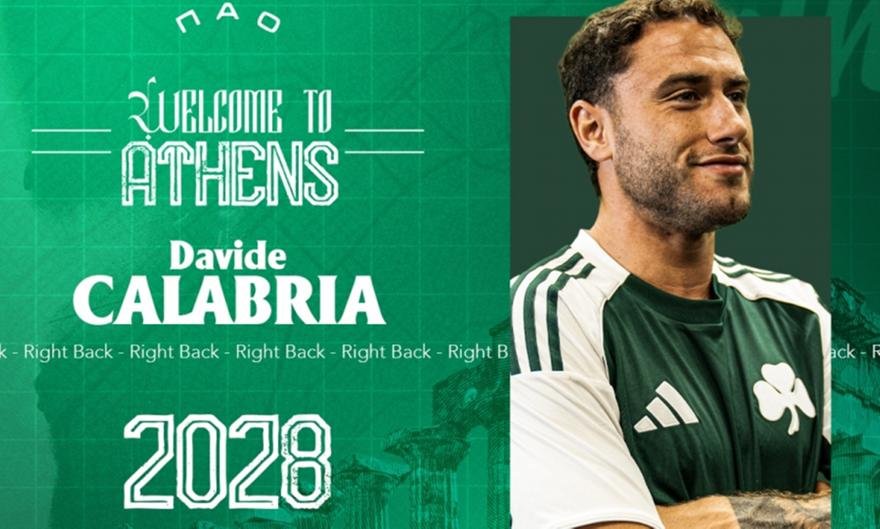 Ποδοσφαιριστής του Παναθηναϊκού με κάθε επισημότητα είναι ο Νταβίντε Καλάμπρια. Οι «πράσινοι» ανακοίνωσαν την απόκτηση του Ιταλού μπακ, ο οποίος υπέγραψε συμβόλαιο τριών ετών.