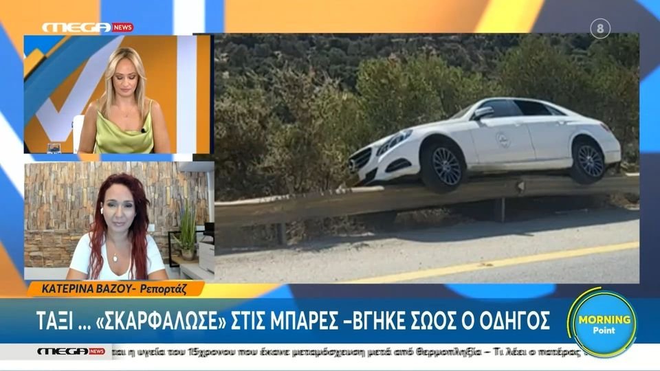 Ταξί στην Κρήτη βγήκε εκτός δρόμου και "σκαρφάλωσε" στις μπάρες, χωρίς να τραυματιστεί ο οδηγός.
