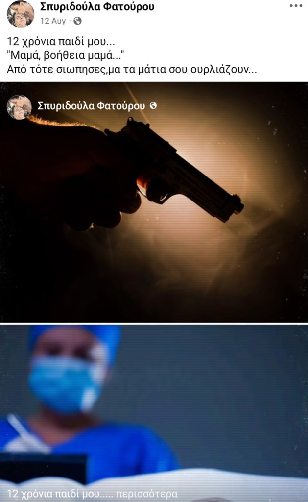 Με μια συγκλονιστική ανάρτηση η μητέρα της Ασπασίας Μπόγρη από το Άργος, Σπυριδούλα Φατούρου, αναφέρθηκε στην μαύρη επέτειο των 12 ετών από τότε που ο πατέρας του κοριτσιού τον Αύγουστο 2013 την πυροβόλησε στο κεφάλι για να εκδικηθεί τη μητέρα της, ενώ στη συνέχεια αυτοκτόνησε με το ίδιο όπλο.