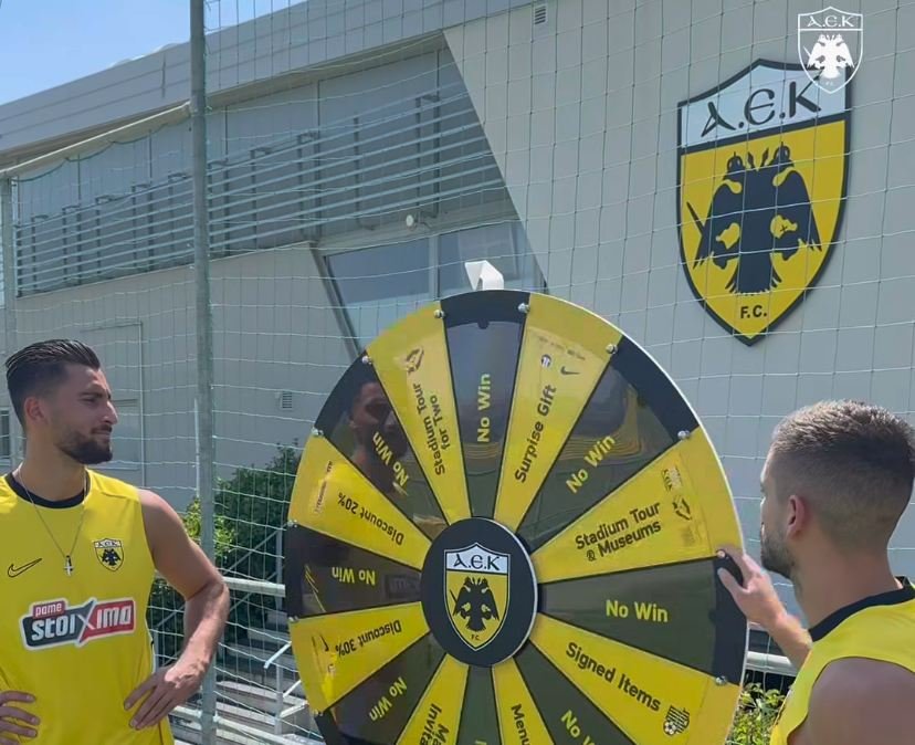Από αυτή την Κυριακή, στον αγώνα με τον Πανσερραϊκό, και σε ΚΑΘΕ εντός έδρας ματς Πρωταθλήματος, ο Τροχός της ΑΕΚ θα μοιράζει πλούσια κιτρινόμαυρα δώρα στους φίλους της ομάδας μας. Θα τον βρεις στην είσοδο του κεντρικού κτιρίου της OPAP Arena, από δύο ώρες πριν την έναρξη του αγώνα.