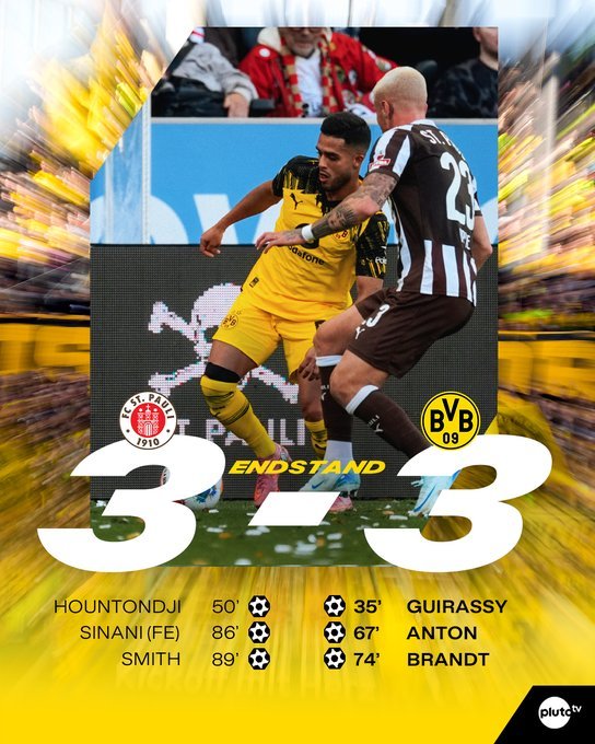 Σοκ με το καλημέρα για την Ντόρτμουντ, η οποία κόλλησε στο 3-3 στην έδρα της Ζανκτ Πάουλι.