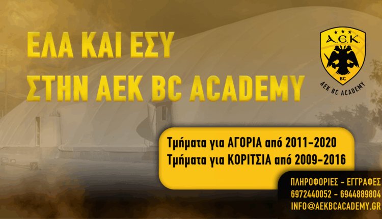 «Η Γενική Διεύθυνση της ΑΕΚ ΒC ACADEMY υπενθυμίζει, ότι συνεχίζεται η διαδικασία εγγραφών.