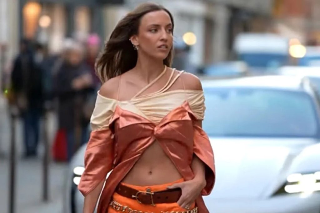 Η Κάρλα, κόρη του Γάλλου παλαίμαχου άσου, φόρεσε μια μαύρη φούστα σχεδόν μέχρι τον αστράγαλο. Πάνω όμως, κυριαρχούσε το φωτεινό ροζ εσώρουχό της και όταν πήρε θέση στην πασαρέλα, περισσότεροι κοιτούσαν εκείνη, παρά την επίδειξη της collection άνοιξη/καλοκαίρι 2026.