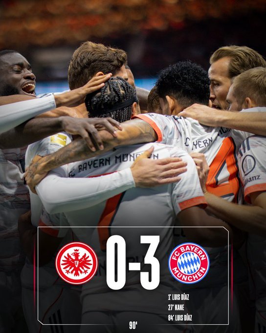 Ακόμα μία νίκη πανηγύρισε η Μπάγερν Μονάχου η οποία κέρδισε με 3-0 την Άιντραχτ μέσα στη Φρανκφούρτη. Έτσι, οι Βαυαροί συνεχίζουν απόλυτοι μετά από 6 αγωνιστικές και αύξησαν τη διαφορά τους από Ντόρτμουντ και Λειψία που έμειναν ισόπαλες νωρίτερα (1-1).