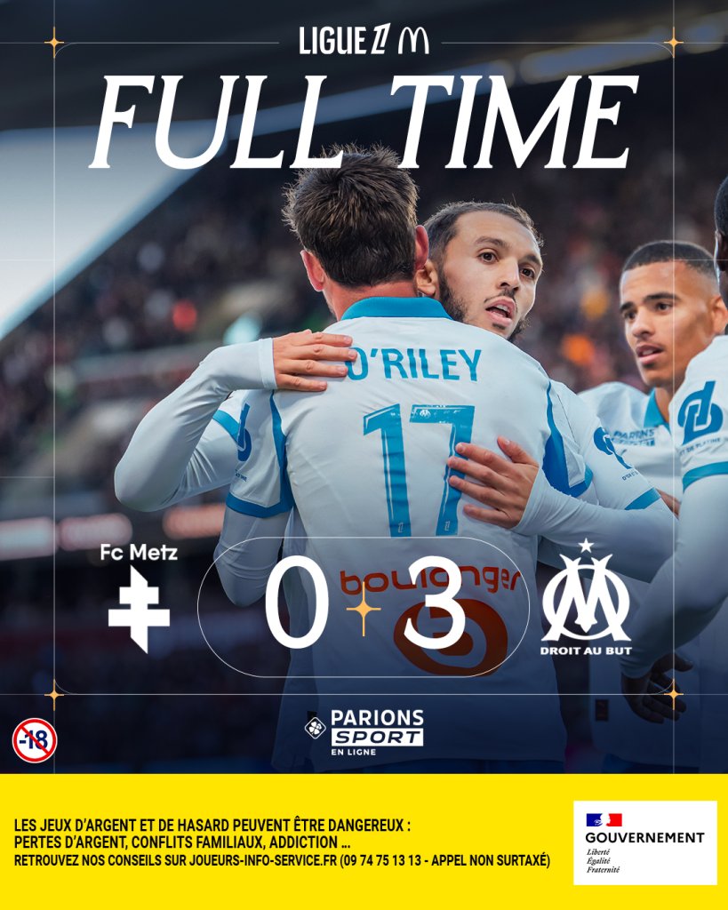 Με ξέσπασμα στο δεύτερο ημίχρονο, η Μαρσέιγ επιβλήθηκε 3-0 στην έδρα της ουραγού Μετς και σκαρφάλωσε στην κορυφή.