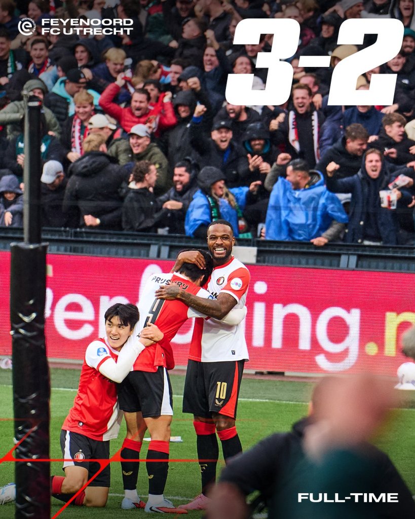 Τη τελευταία λέξη, ωστόσο, την είπε ο Ουέντα. Στο 88ο λεπτό, οι γηπεδούχοι συνδυάστηκαν εξαιρετικά, η μπάλα έφτασε στον Ιάπωνα, ο οποίος, πέφτοντας, νίκησε τον Μπάρκα, χαρίζοντας το τρίποντο στη Φέγενορντ, που έχει επτά νίκες και μια ισοπαλία, μετά από οκτώ αγωνιστικές. Σε πτώση η Ουτρέχτη που μετράει μια ισοπαλία και έξι ήττες στα επτά τελευταία ματς.