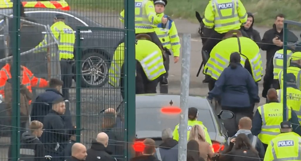Άλλοι οπαδοί περικύκλωσαν το αυτοκίνητο του Σκωτσέζου, για αυτό και εκείνος έφυγε συνοδεία αστυνομικών από το γήπεδο.