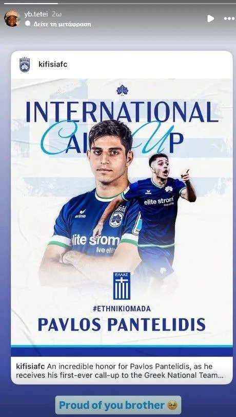 Ο επιθετικός της Κηφισιάς συνεχάρη τον συμπαίκτη του σε ένα story στο instagram…