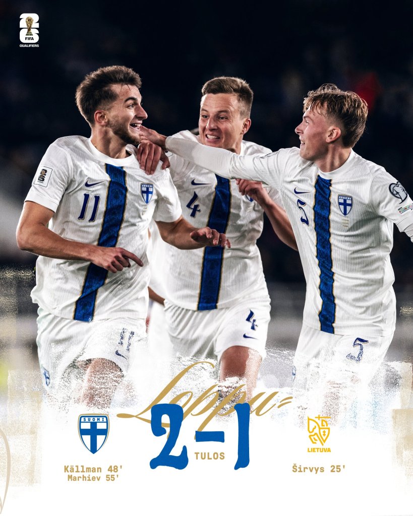 Ζωντανή για την πρόκριση έμεινε η Φινλανδία, που κέρδισε με 2-1 τη Λιθουανία και μάλιστα με ανατροπή. Στους 10 πόντους οι Φινλανδοί, όσους έχουν Ολλανδοί και Πολωνοί, αλλά με ματς λιγότερα.