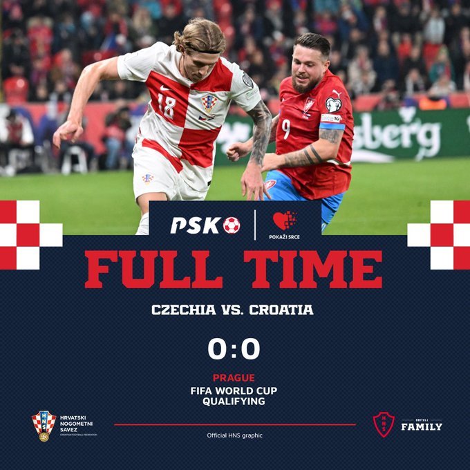 Στο ο-0 κόλλησαν Κροατία και Τσεχία, παρέμειναν ισόβαθμες στην πρώτη θέση (13 βαθμοί), αλλά οι Κροάτες έχουν κι ένα ματς λιγότερο.